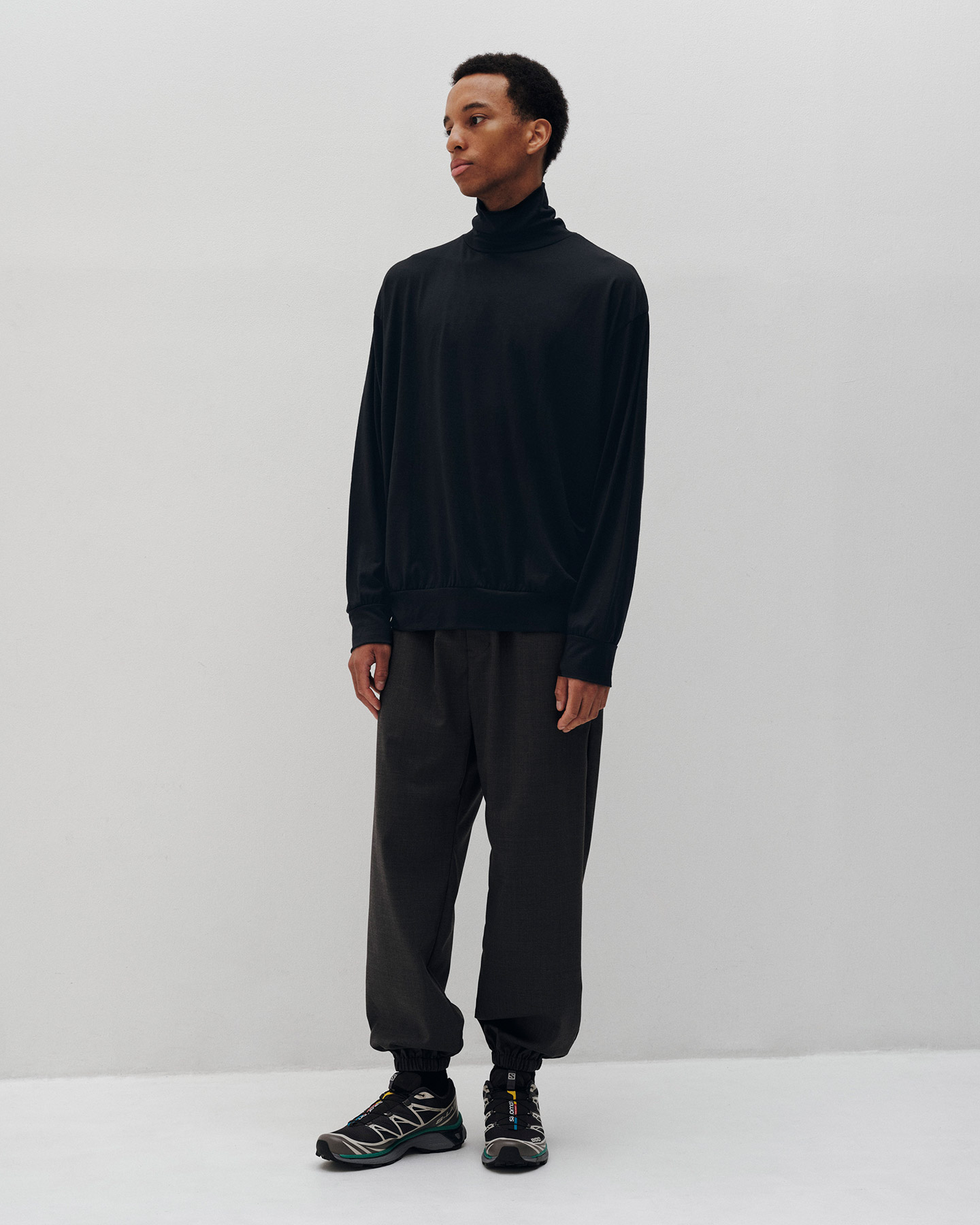 WASHABLE WOOL HEM RIBBED L/S TURTLENECK TOP