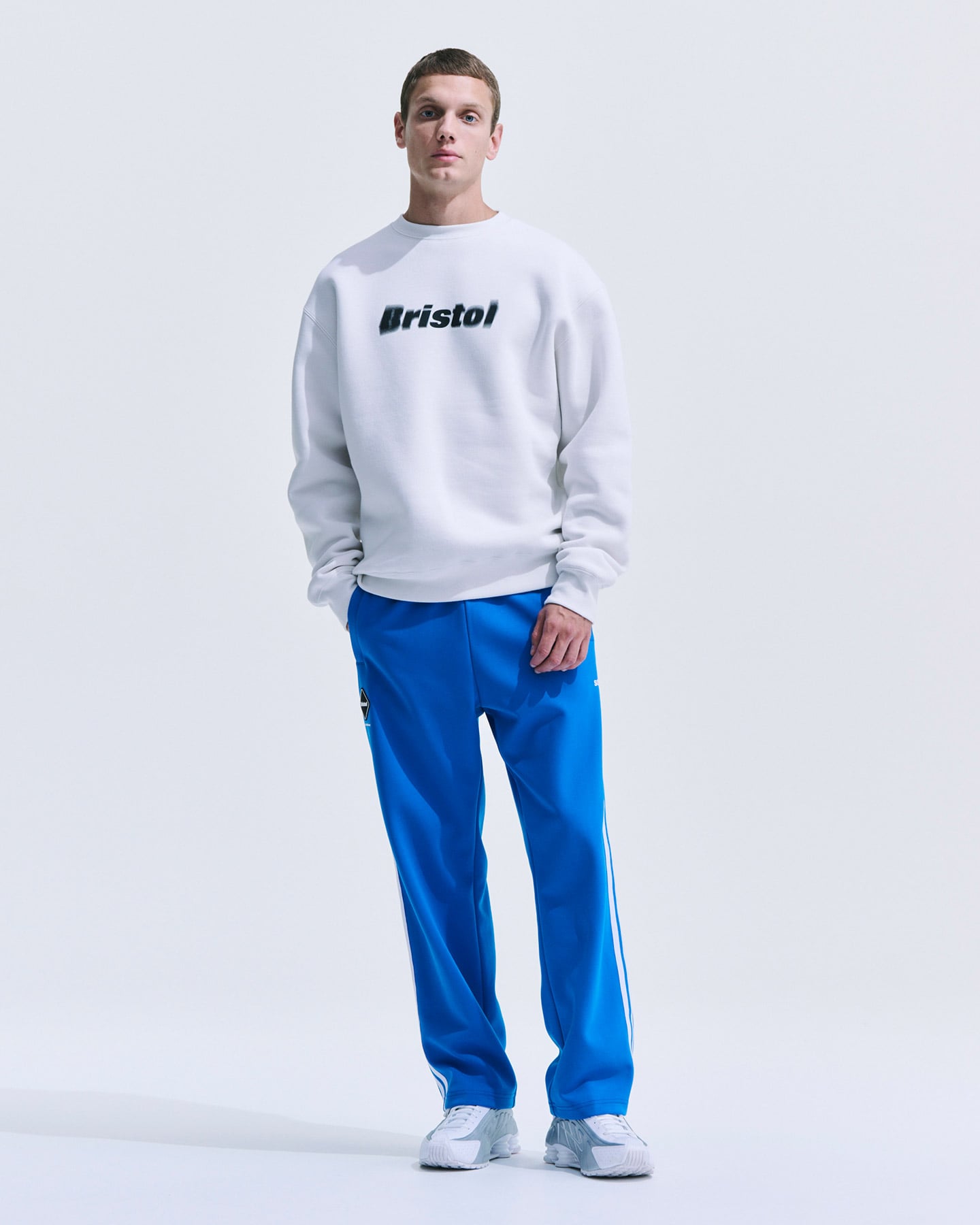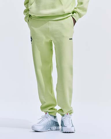 エフェクトで部分的にぼかしやブレを入れた今季の新ロゴが、ベーシックなクルーネックスウェットの胸元にフレッシュな躍動感を与えます。素材は軽量かつ吸水性の高いポリエステル混の裏毛コットン。新色に、同素材のパンツと連動したシーズナルな蛍光グリーン。